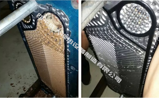 板式熱交換器由于長時間工作,傳染板片表面將產(chǎn)生不同程度的污垢或沉積物,從而增加流阻和降低傳熱性能,主要表現(xiàn)為進(jìn)出口壓力表壓差增大和冷介質(zhì)出口溫度降低,因此必須對其檢查清洗。