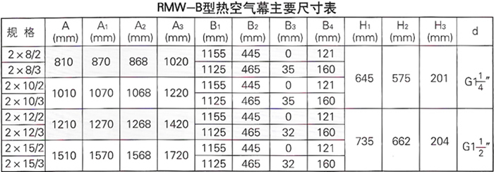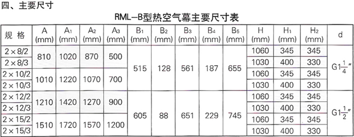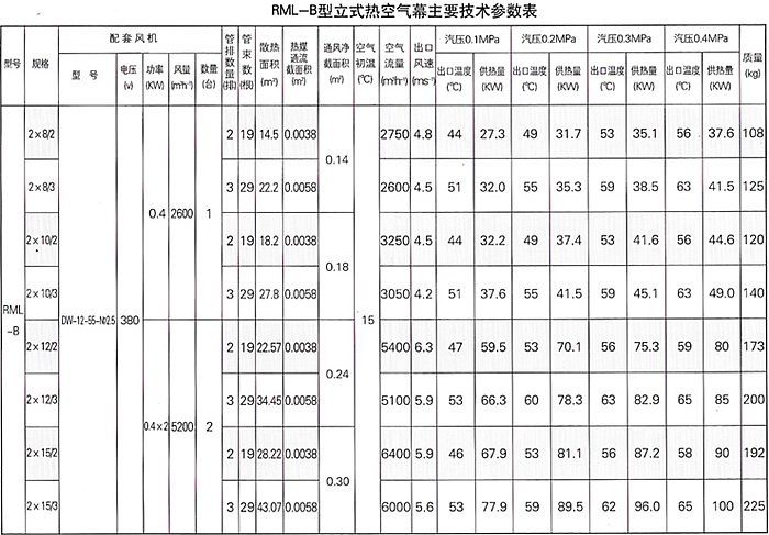 RML(W)-B型熱空氣幕主要由風(fēng)機(jī)、空氣加熱器、上下導(dǎo)流罩、出風(fēng)口罩等部件組成。是將室內(nèi)空氣通過空氣加熱器加熱,由風(fēng)機(jī)將被加熱的空氣吹出形成氣幕,用來隔離室內(nèi)外冷熱空氣的一種裝置。該設(shè)備具有噪聲低、省電、易安裝和使用維修方便等諸多特點(diǎn)。本熱空氣幕的熱媒介質(zhì)主要是0.1~0.6Mpa的蒸汽,安裝形式分為立式和臥式兩種,廣泛用于各行業(yè)通風(fēng)采暖、空氣調(diào)節(jié)等工程上,尤其適應(yīng)于人員頻繁出入、大門經(jīng)常開啟,如商場、劇場、賓館等場所。