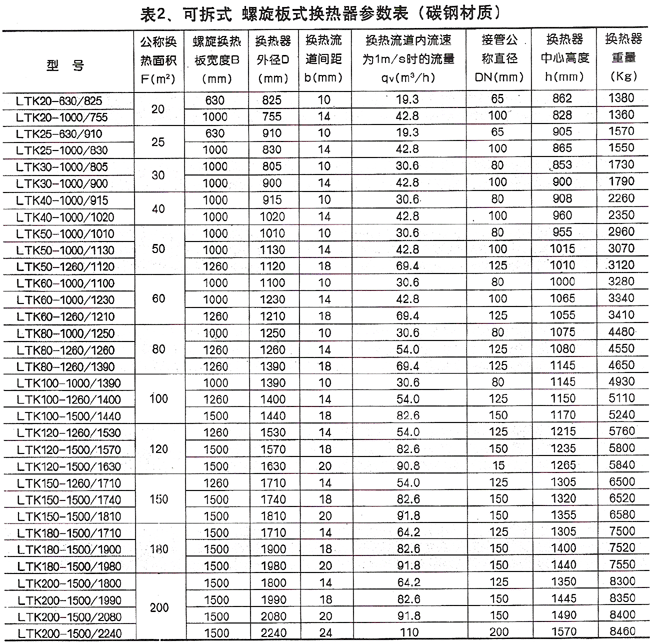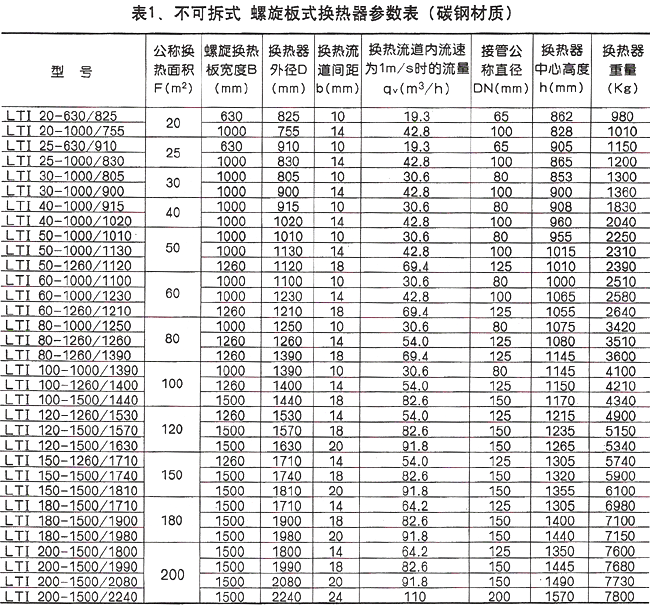 六、螺旋板式換熱器的參數(shù)表