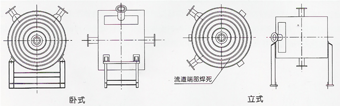 卷制后的螺旋板式換熱器,其兩端焊死,它不可拆卸,形成固定結(jié)構(gòu),流程內(nèi)部不可觸及。它適用于不易堵塞的流體換熱。不可拆式又有臥式和立式的結(jié)構(gòu)。