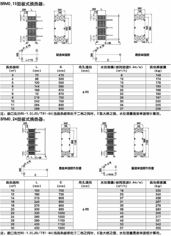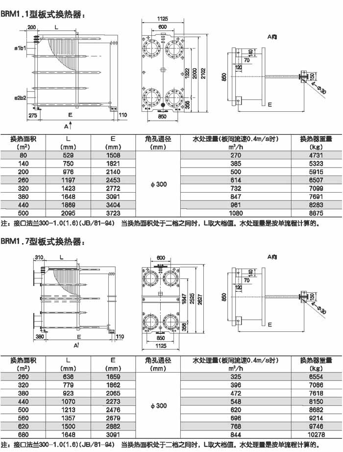 BRMO.0是指單片換熱板片的有效換熱面積為0.g平方米,其它型號(hào)的意義相同。選擇某種型號(hào)采用不同數(shù)量的換熱板片就可組裝成所需換熱面積的換熱器。