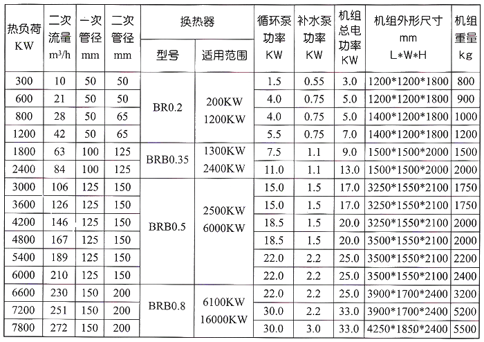 水/水機(jī)組                       一次網(wǎng)130/80 ℃                      二次網(wǎng)95/70 ℃